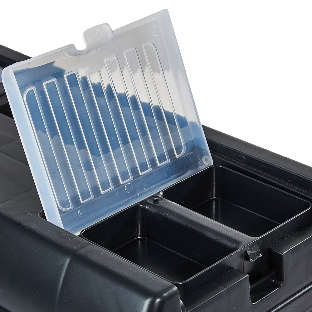 Корпус виготовлений з ударостійкого АБС-пластику, що гарантує міцність та стійкість до ударів. Цей ящик є відмінним вибором для домашніх майстрів, автолюбителів та працівників комунальних служб, оскільки він допоможе зберегти інструмент в порядку та захистить його від пошкоджень.