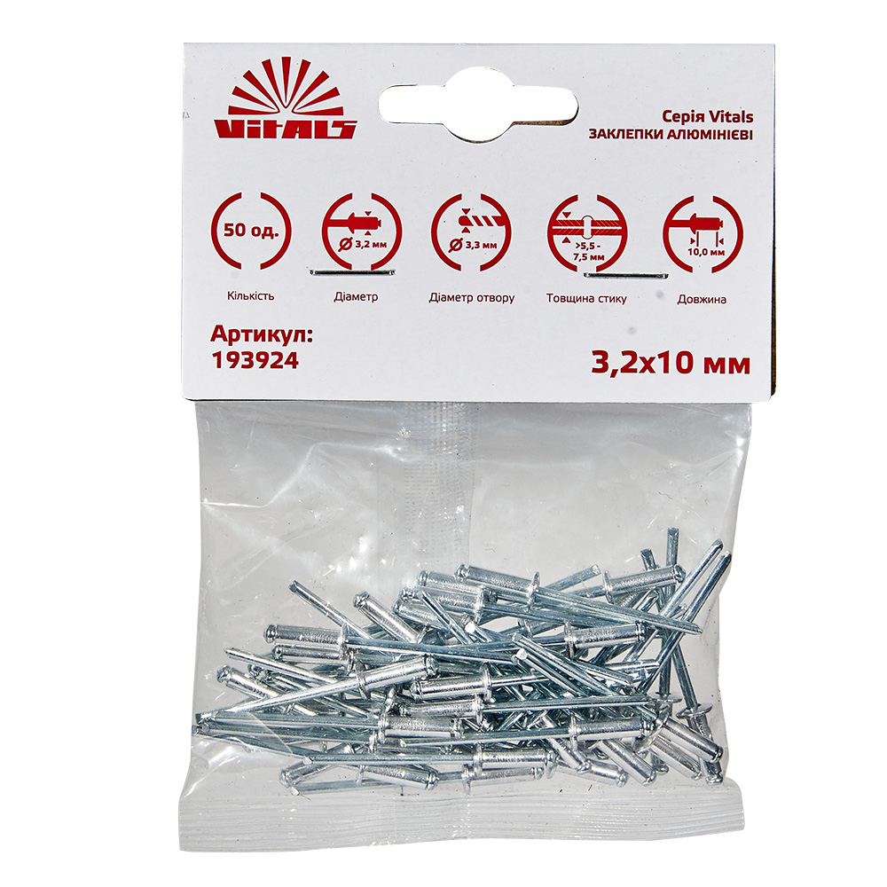 Заклепки алюмінієві 3.2x10 мм (50 од.) Vitals