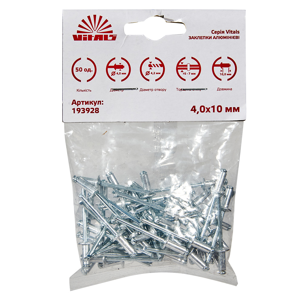 Заклепки алюмінієві 4.0x10 мм (50 од.) Vitals