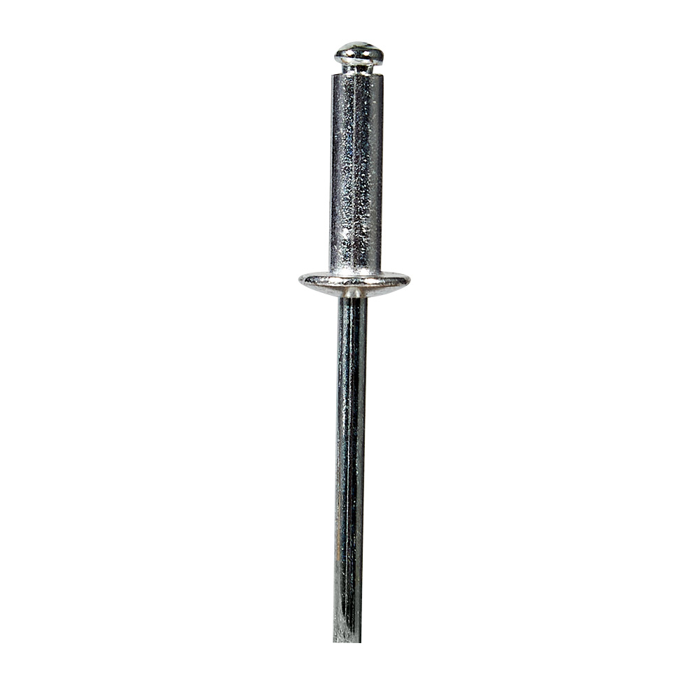 Корпус заклепок виготовлений з високоякісного алюмінію, що забезпечує легкість, стійкість до впливу вологи та атмосферних чинників. Такий матеріал не іржавіє, не піддається деформації при монтажі та гарантує тривалий термін експлуатації. Заклепки мають стандартну форму з напівкруглою головкою, яка рівномірно розподіляє тиск і запобігає пошкодженню зʼєднуваних поверхонь.