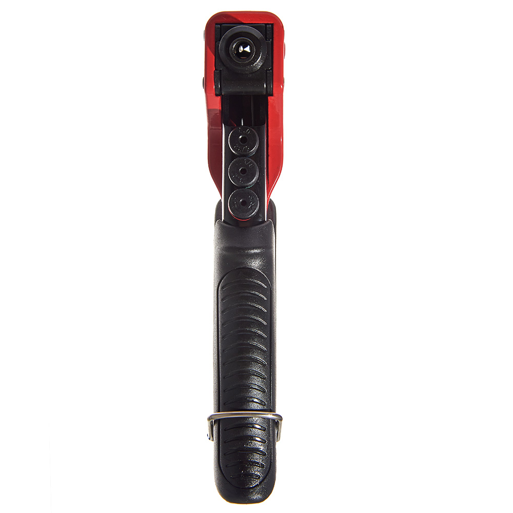Особливою перевагою моделі є трикулачкова затискна система, виготовлена зі сталі марки CrMo, яка забезпечує рівномірне та надійне фіксування заклепки, а також зменшує зусилля при стисненні руків’їв до 40%. Це значно покращує комфорт при тривалій роботі, зменшуючи навантаження на руки користувача.