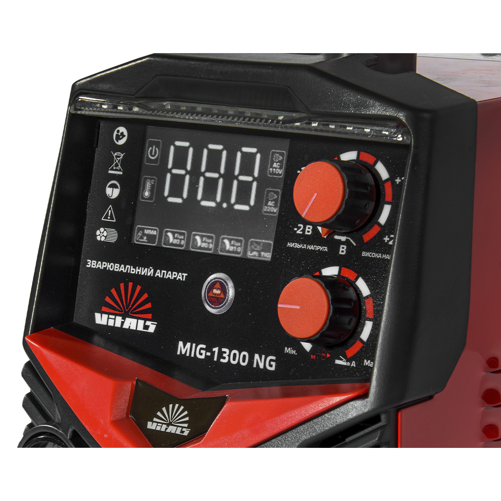 Зварювальний апарат Vitals «MIG-1300 NG» - це надійний та продуктивний інструмент, який забезпечує високу якість зварювання та забезпечує комфортні умови роботи для оператора.