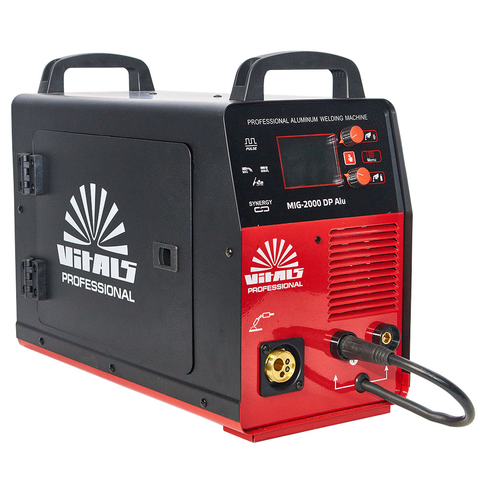 Завдяки тривалому режиму роботи на максимальних струмах апарат чудово підходить для роботи як на побутовому, так і на професійному рівні. У гаражі, в автосервісі, на виробництві, проявлятиме себе прекрасним і надійним помічником у справі. Vitals Professional MIG 2000 DP Alu показав чудові результати під час роботи з алюмінієм. Рекомендуємо цей апарат для професійного зварювання металу. Наочне керування всіма важливими параметрами зварювання на передній панелі дозволить налаштувати напівавтомат для виконання широкого спектру зварювальних робіт. Окремим плюсом апарату є можливість зварювання в мережах з великими просіданням напруги живлення - Vitals Professional MIG 2000 DP Alu здатний працювати при падінні напруги до 160 вольт.
