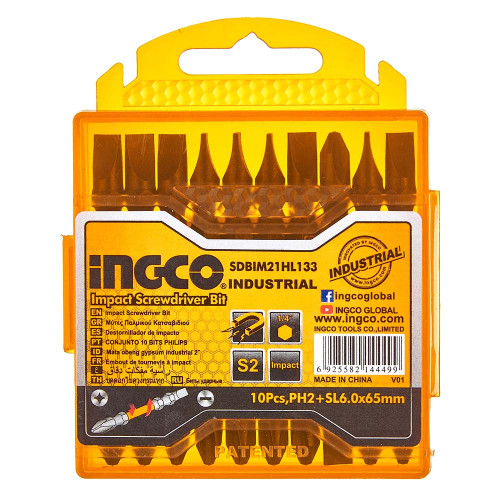 Набір двосторонніх ударних біт INGCO INDUSTRIAL PH2 + SL6×65 мм (10 шт.) — практичний комплект для роботи з шурупами та кріпленням, призначений для використання з ударними викрутками, шурупокрутами та дрилями.