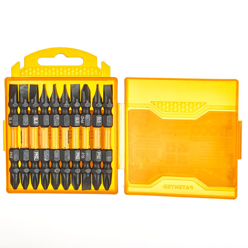 Шліц двосторонній: PH2 + SL6, довжина біти — 65 мм. Біти мають нікелеве покриття та намагнічені, що забезпечує зручне кріплення шурупів і запобігає їх випадінню під час роботи.