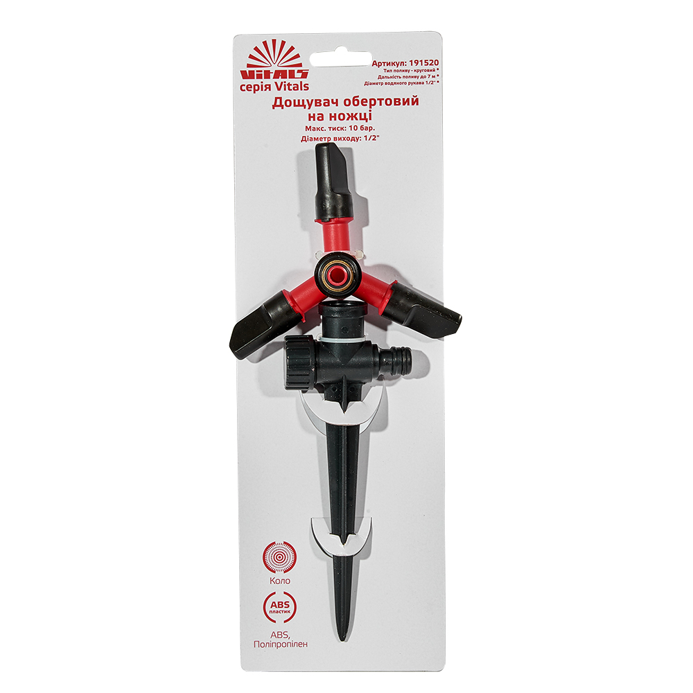 Особливості дощувача кругового з головкою, що обертається, на ніжці Vitals: