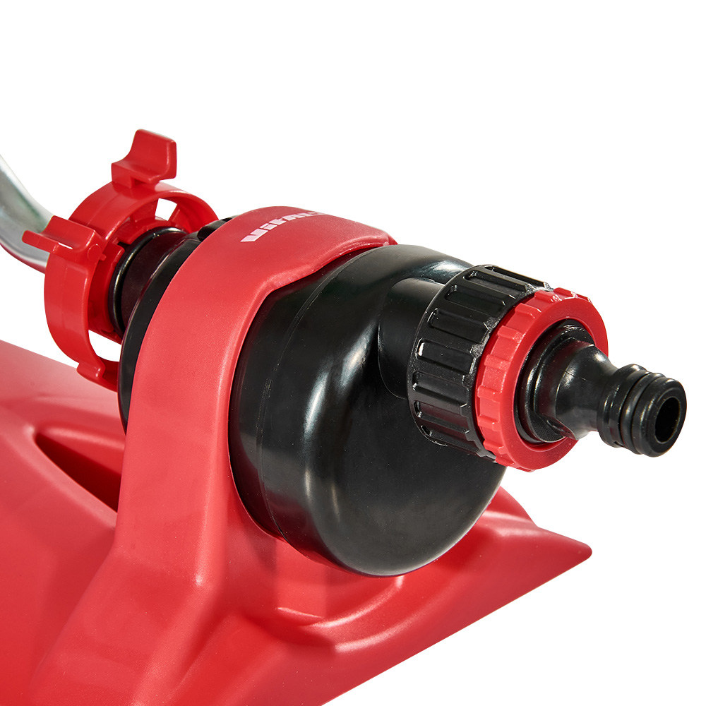 Виготовлений з міцного АБС-пластику та сталі, цей дощувач надійний та довговічний. Його компактна основа забезпечує стійке розташування на землі, не ушкоджуючи газон. Для підключення до водопроводу використовується універсальний адаптер 1/2", а також у комплекті йде перехідник для шланга 3/4", що робить процес установки дуже зручним.