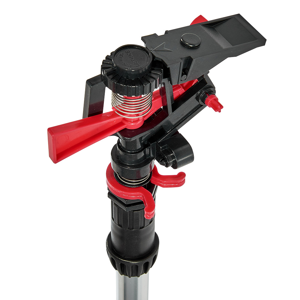 Зручна форма ніжки дозволяє легко фіксувати дощувач у ґрунті, а легка конструкція дозволяє легко переносити його з місця на місце або стаціонарно встановлювати на потрібній ділянці. Цей дощувач стане незамінним помічником у вашому саду чи городі, забезпечуючи потрібний рівень зволоженості для здоров'я та процвітання ваших рослин.