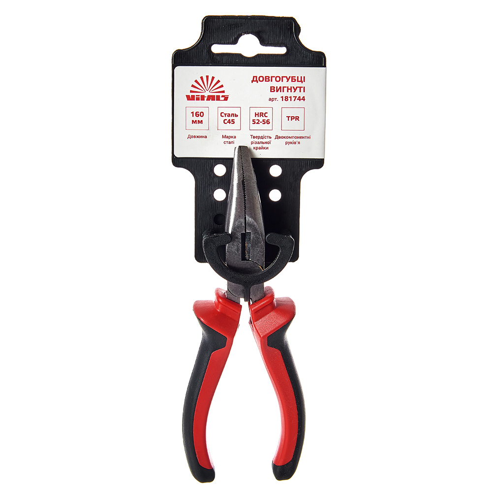 Довгогубці вигнуті 160 мм Vitals призначені для виконання слюсарних, монтажних та ремонтних робіт. За рахунок подовжених губок інструментом зручно працювати в важкодоступних місцях.