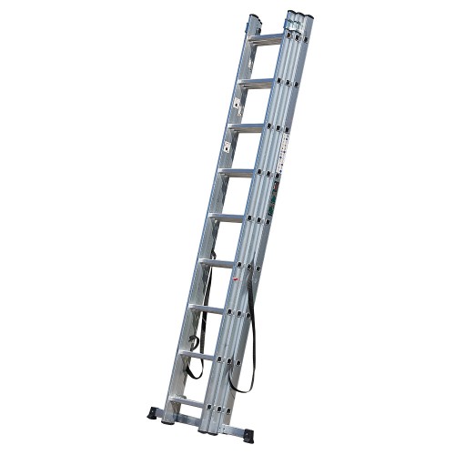 Сходи складаються з трьох секцій, кожна з яких містить 9 сходинок, що дозволяє досягати робочої висоти до 5927 мм у розкладеному вигляді. У складеному вигляді висота драбини становить 2566 мм, що дозволяє зручно транспортувати та зберігати її. У положенні драбини висота становить 2426 мм, що робить її універсальною для виконання різноманітних завдань.