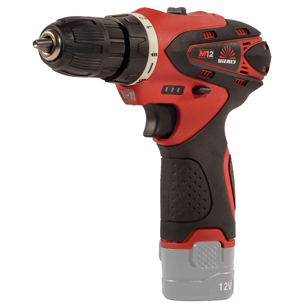 Інструмент оснащений колекторним двигуном постійного струму і працює від Li-ion акумулятора лінійки «М12» ТМ «VITALS» (не входить у комплект). Два режими швидкості, реверс і LED-підсвітка робочої зони дозволяють швидко і точно виконувати завдання навіть у темних або важкодоступних місцях. Швидкозажимний трьохкулачковий патрон і регулятор крутного моменту забезпечують точне і надійне закручування різьбових елементів без пошкодження матеріалу.