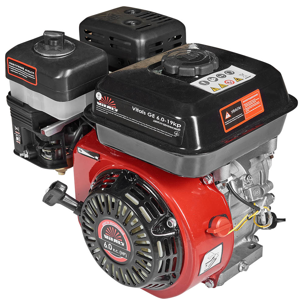 Двигун внутрішнього згоряння Vitals GE 6.0-19kp - універсальний бензиновий одноциліндровий чотиритактний двигун загального призначення з повітряним охолодженням.