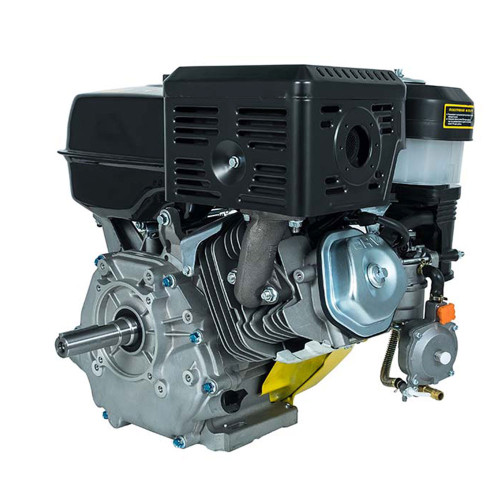 Двигун оснащений карбюратором із газовим редуктором, що дозволяє швидко перемикати тип палива. Для запуску використовується ручний стартер, а датчик низького рівня масла автоматично зупиняє двигун при нестачі мастила, запобігаючи пошкодженням. Дві горловини для заливання масла забезпечують зручність обслуговування з різних боків картера.