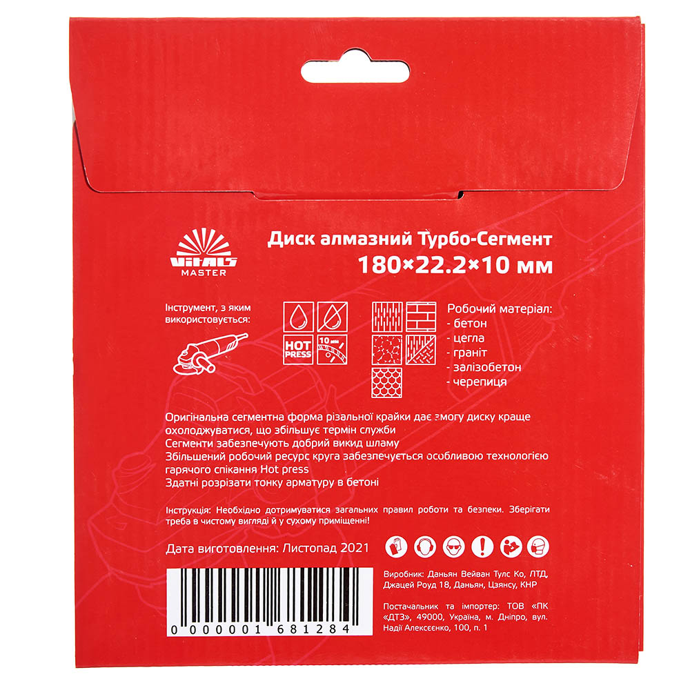 Опис алмазного диску Vitals Master Турбо-Сегмент 180×22.2×10 мм