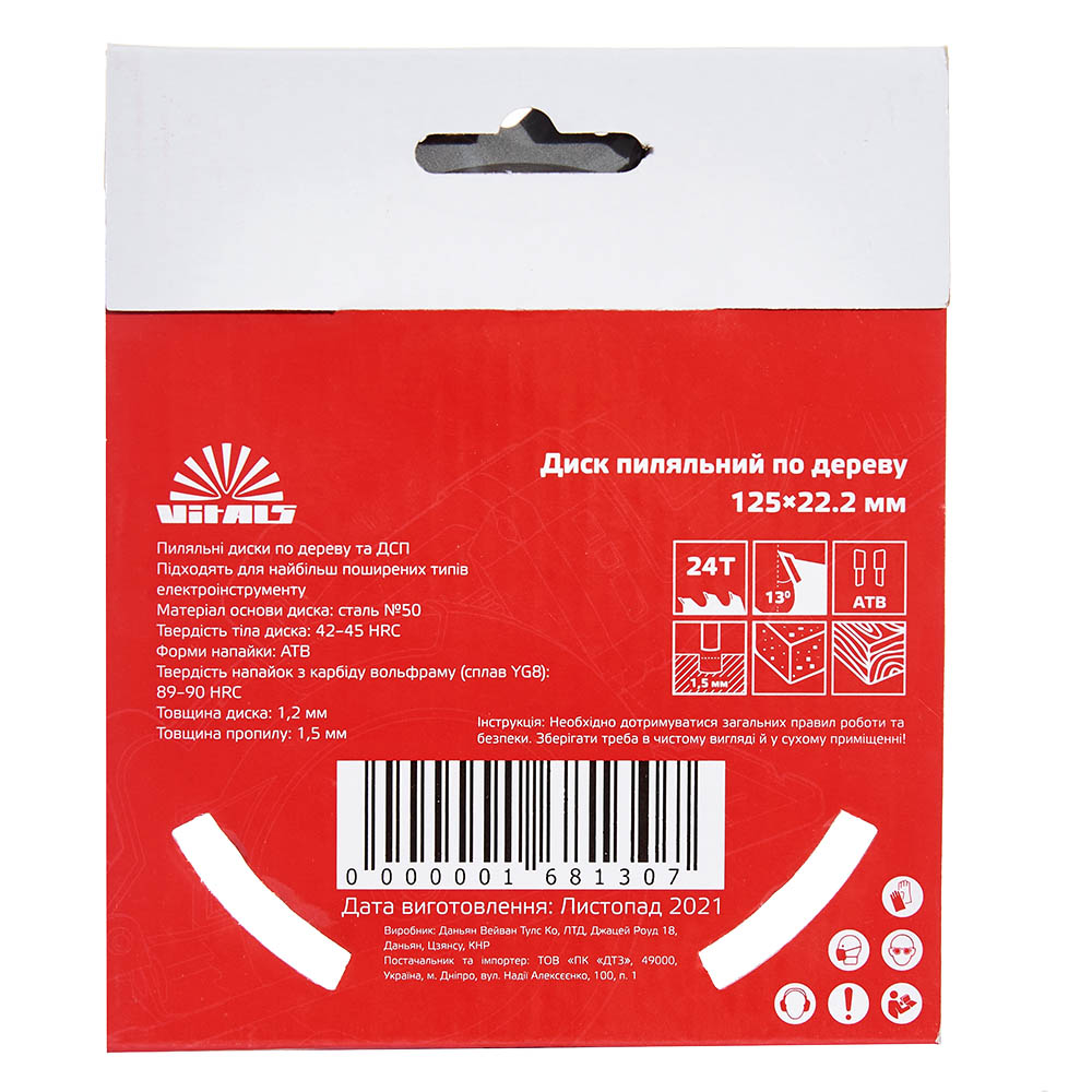 Опис пиляльного диску Vitals по дереву 125x22.2, ATB 24