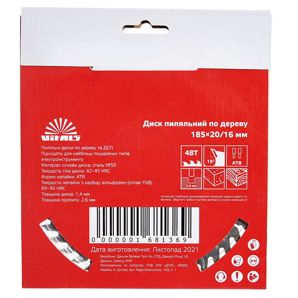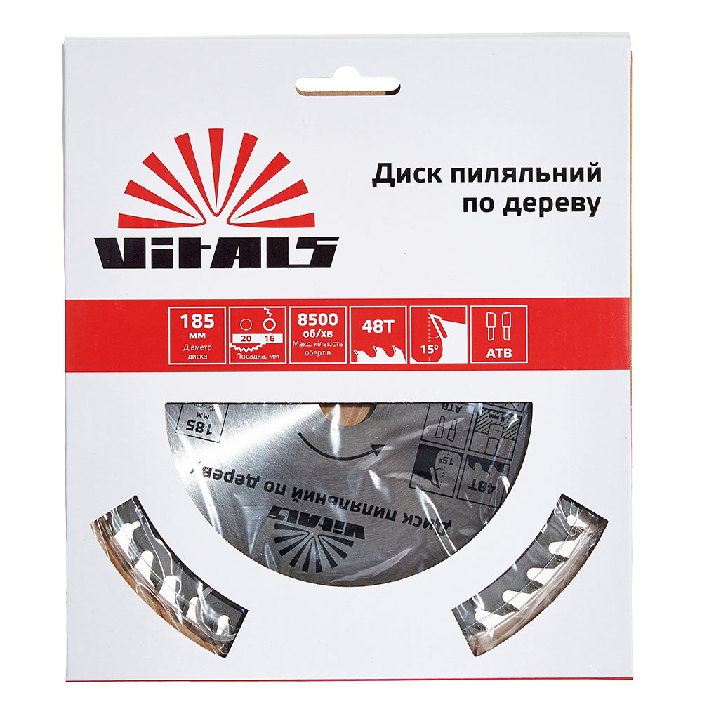 Опис пиляльного диску Vitals по дереву 185x20/16, ATB 48