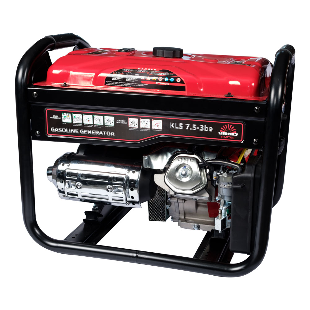 Бензиновий генератор Vitals Master KLS 7.5-3be — це компактний переносний електричний агрегат, призначений для резервного або аварійного живлення побутових споживачів. Виробляє змінний струм частотою 50 Гц: однофазний — напругою 230 В, або трифазний — напругою 400 В. Номінальну електричну потужність 9,4 кВА (7,5 кВт), максимальну 10,0 кВА (8,0 кВт) генератор видає лише за трифазного підключення навантаження.