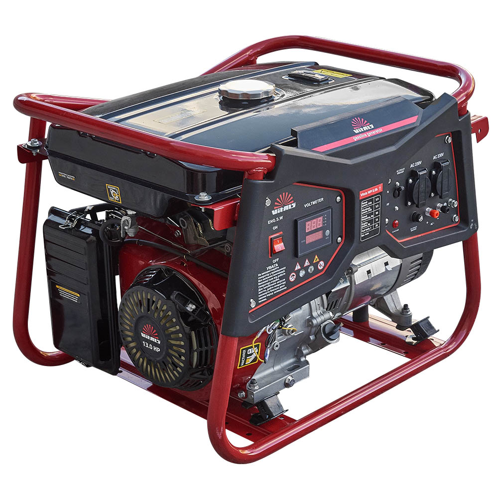 Бензиновий генератор Vitals WP 5.0b — це компактний переносний електричний агрегат, призначений для резервного або аварійного живлення побутових споживачів. Виробляє однофазний змінний струм 230 В, частотою 50 Гц.