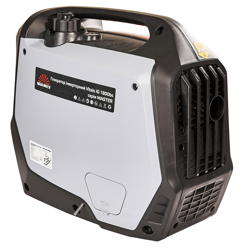 Бензиновий інверторний генератор Vitals Master IG 1800bs – компактний переносний електричний агрегат, призначений для резервного або аварійного живлення побутових споживачів. Виробляє правильний змінний однофазний струм напругою 230 В, частотою 50 Гц.