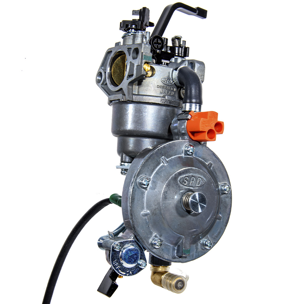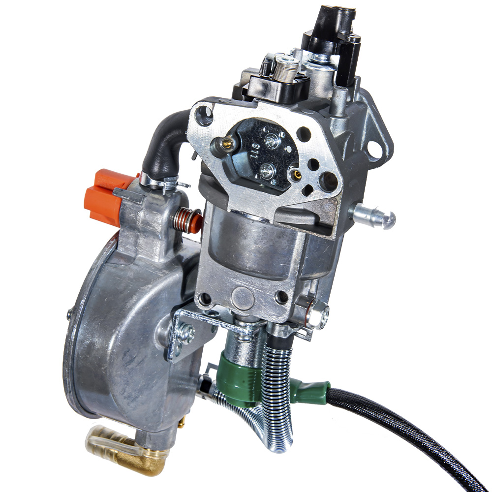 Пристрій забезпечує стабільну подачу газу до двигуна та точне формування паливно-повітряної суміші, що гарантує рівномірну роботу генератора навіть під навантаженням. Вбудований редуктор підтримує необхідний робочий тиск газу, підвищуючи безпеку та надійність експлуатації.