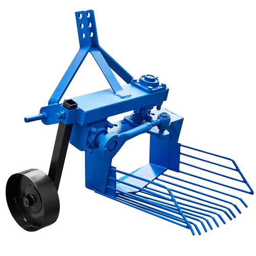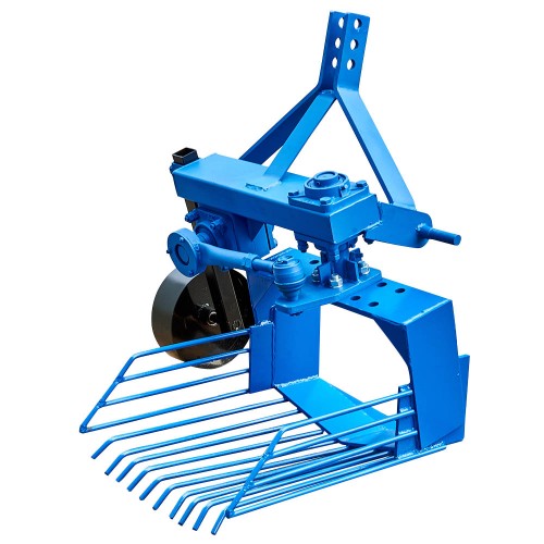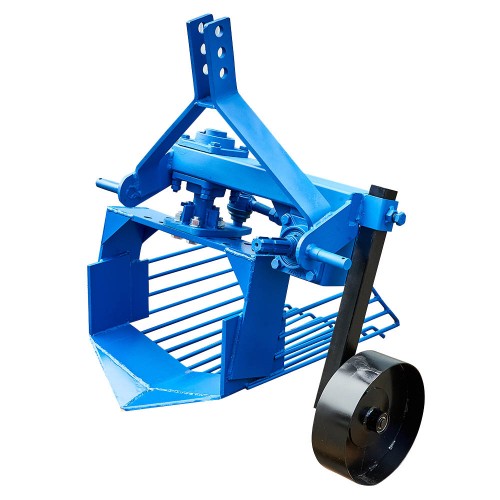 1. **Призначення та установка:** Використовується для механізованого збирання картоплі та інших коренеплодів, висаджених рядним способом з глибиною залягання до 15 см. Встановлюється на 3-точкову навісну систему та підключається до валу відбору потужності трактора.