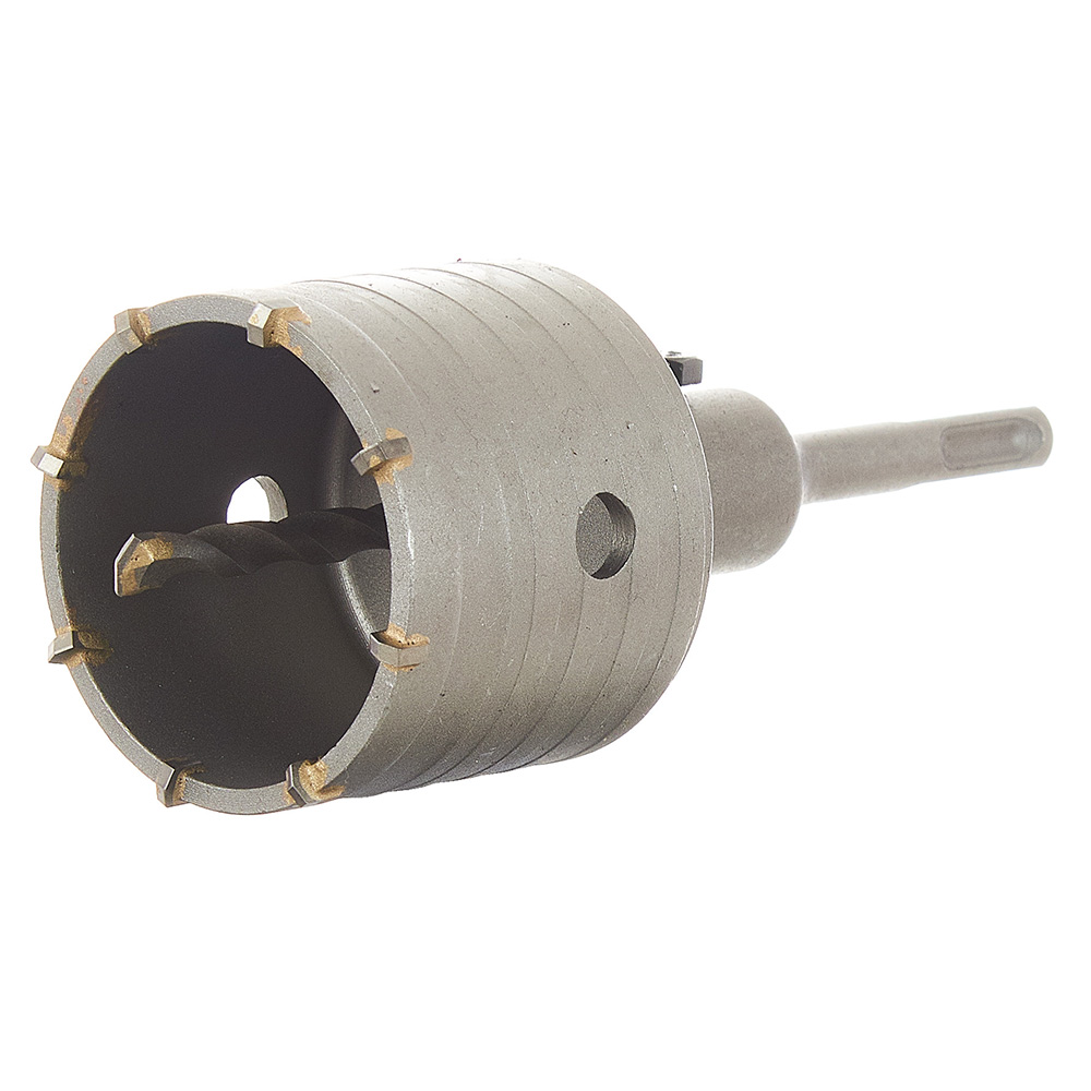 - Універсальність: Коронка підходить для роботи з бетоном, каменем і цеглою, що робить її ідеальним інструментом для виконання ударного свердління великих отворів.