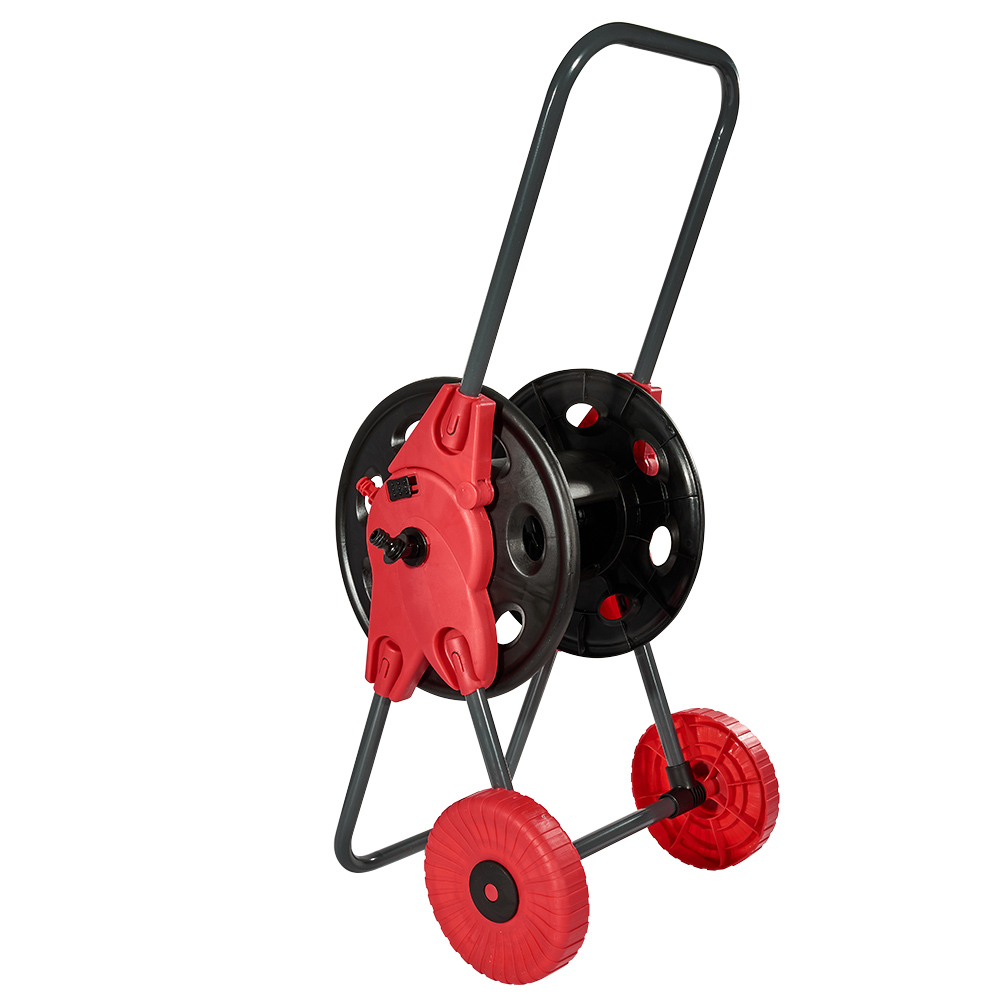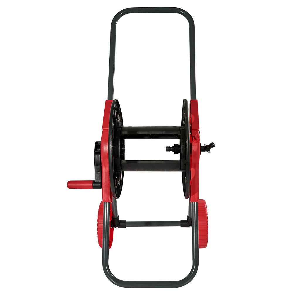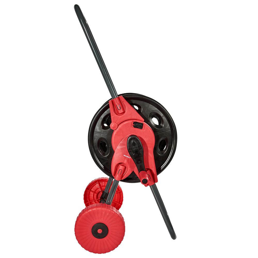 Котушка виконана у вигляді візка з великими колесами, що дозволяє легко переміщати її по вашій ділянці навіть з будь-яким рельєфом, маючи при цьому високу маневреність. Широка ручка забезпечує відмінне керування при транспортуванні, а зручна складна конструкція дозволяє компактно зберігати котушку після використання.