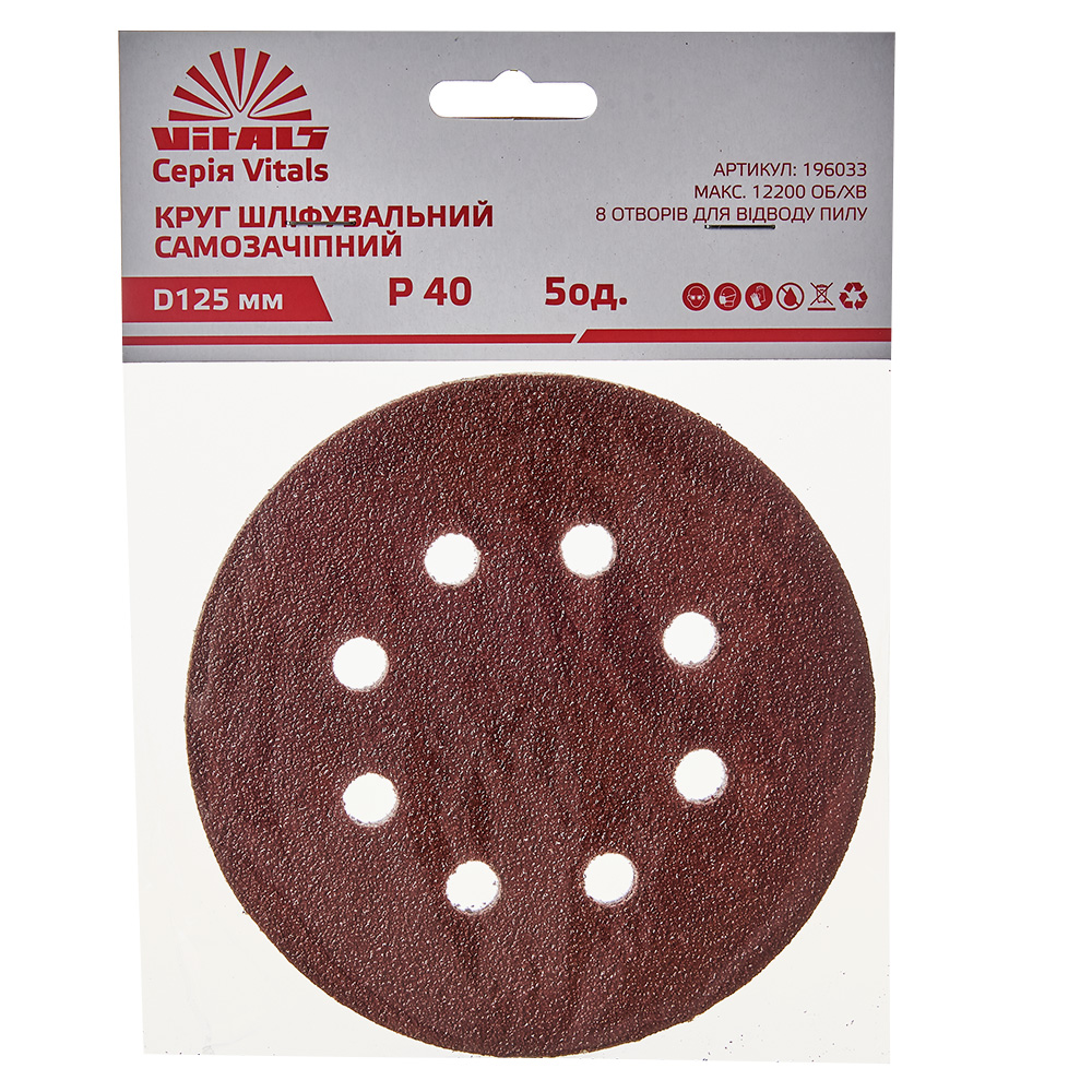 Круг шліфувальний самозачіпний Vitals 125 мм, 8 отв., з. – 40, 5 од.