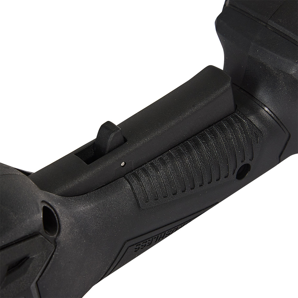 Вбудована безпечна кнопка увімкнення забезпечує додатковий захист від випадкового включення інструменту, забезпечуючи безпеку під час роботи. Ергономічна рукоятка дозволяє зручно керувати інструментом та знижує стомлюваність під час роботи.