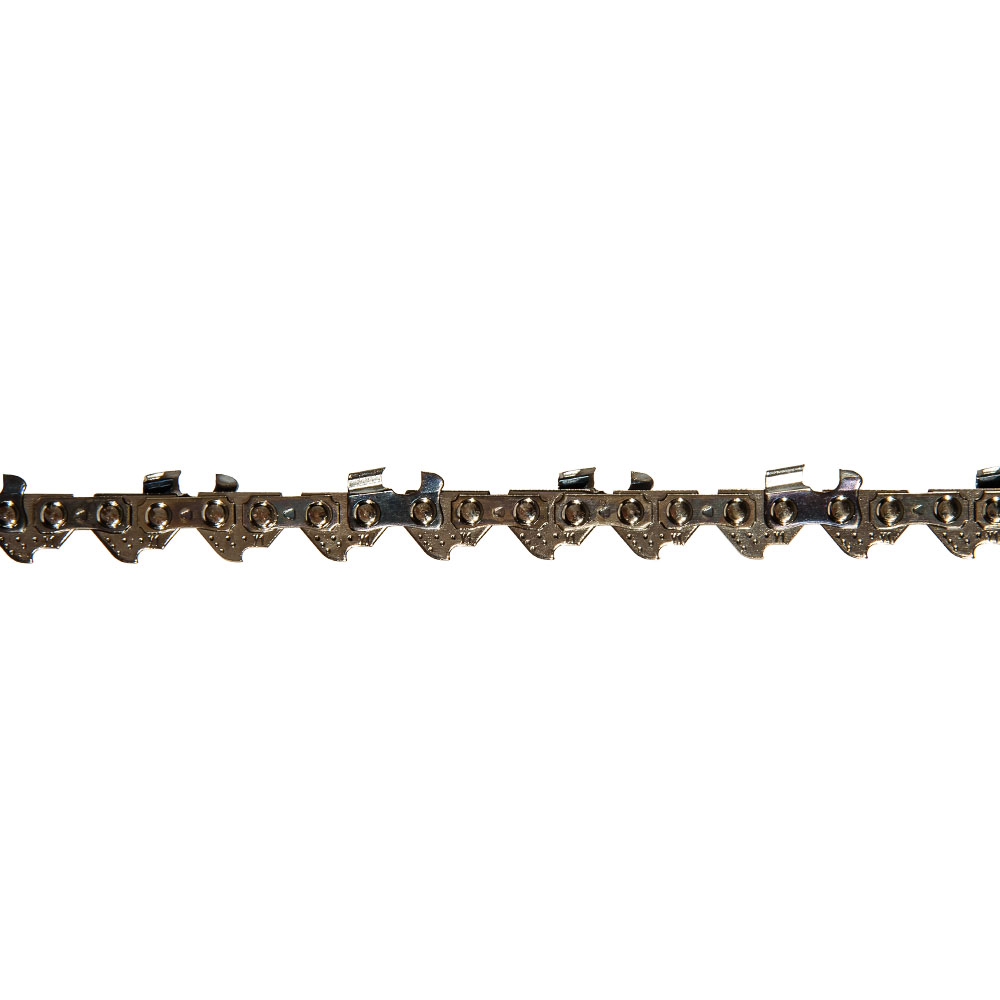Ланцюг виготовлений з легованої закаленої сталі, що забезпечує високу стійкість до зносу, перегріву та деформацій під час інтенсивного використання. Завдяки високоякісним матеріалам ріжучі кромки надовго зберігають свою гостроту, що значно знижує потребу в частій заточці і дозволяє працювати з деревиною різних порід без втрати ефективності. Це особливо важливо для тих, хто використовує пилу на будівельних майданчиках або в садово-господарських роботах, де потрібна точність і швидкість.