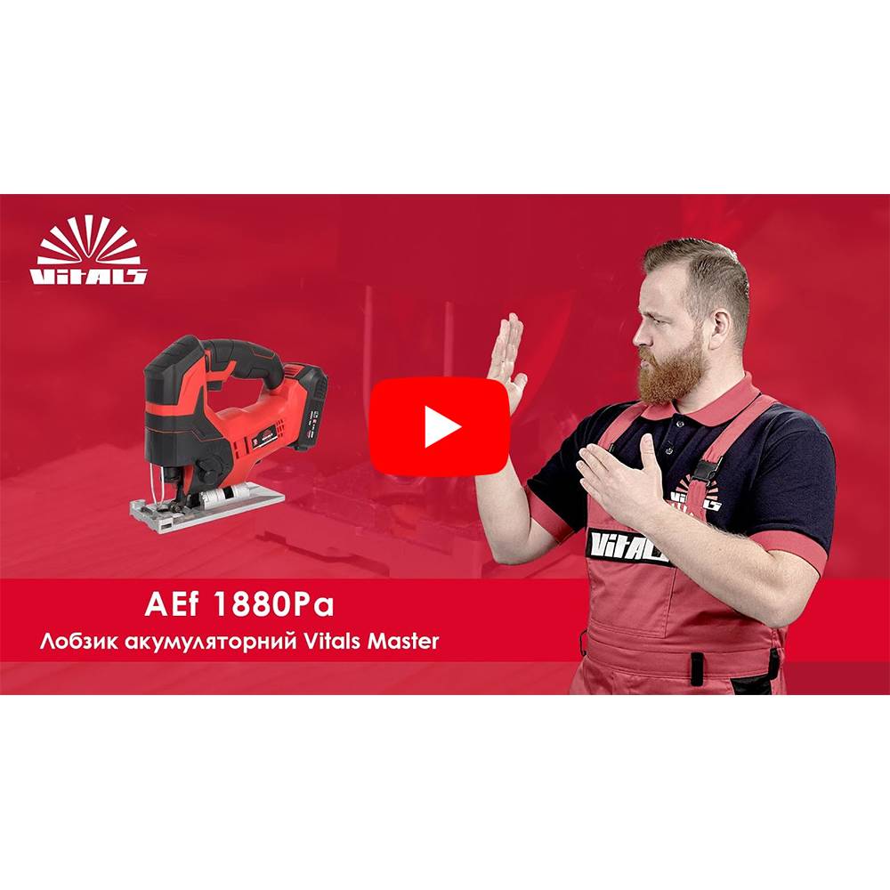 Лобзик акумуляторний Vitals Master AEf 1880pa SmartLine — високоякісний напівпрофесійний інструмент. Призначений для прямолінійного, візерункового (криволінійного) розпилу деревини, деревоволокнистих і деревостружкових плит (ДВП і ДСП), а також пластмаси та металу під час виконання ремонтних та столярних робіт.