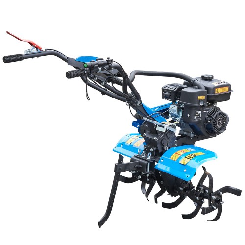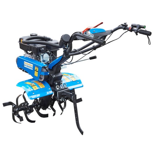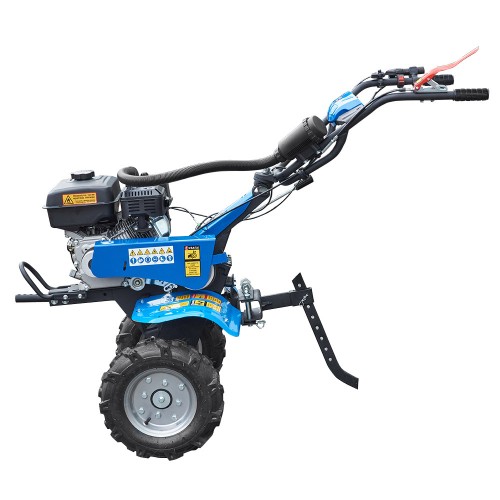 3. **Ефективність бензинового двигуна:** Використання бензинового двигуна забезпечує меншу вагу мотоблока, легше запускання при низьких температурах, менше шуму та менші витрати на обслуговування.
