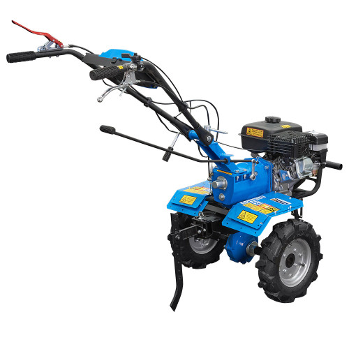 - Укомплектований транспортними колесами розміром 4.00-8, які забезпечують більше тягового зусилля і зручність у руху по різних типах ґрунту.