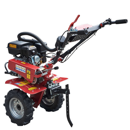 1. **Двигун:** Оснащений потужним бензиновим двигуном з об'ємом 7 л. с., що забезпечує достатню потужність для обробки ґрунту на невеликих і середніх ділянках.