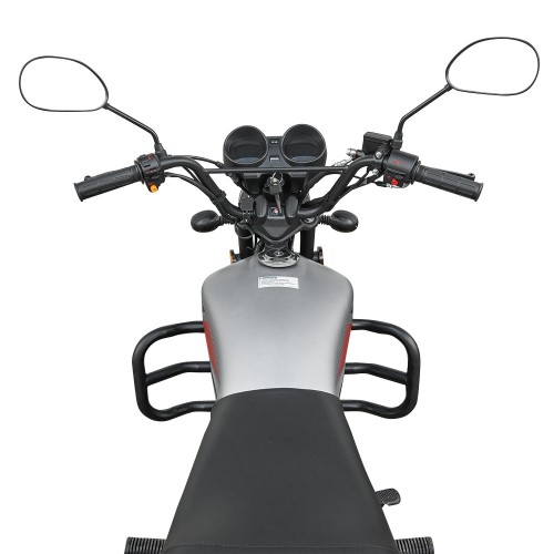• Захист: Мотоцикл має захисні накладки на глушителі та випускній трубі для безпеки, а також дуги безпеки для додаткового захисту водія.