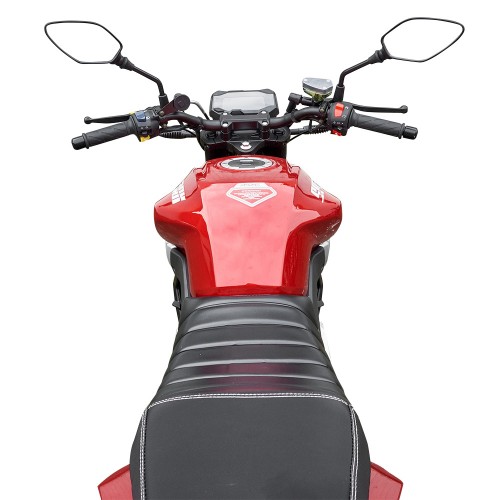 - Шини: Дорожні шини з високим профілем "асфальт" (передня 90/90-17, задня 130/70-17) для стабільності на рівних дорогах.