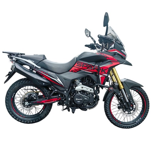 Spark SP250T-6 – це універсальний тур-ендуро мотоцикл, створений для активних поїздок по місту, асфальту та легкому бездоріжжю. Модель поєднує спортивний дизайн з високою функціональністю: подвійна спицева колісна база, телескопічна перевернута передня вилка та пружно-масляна задня підвіска забезпечують стабільність та комфорт під час руху.