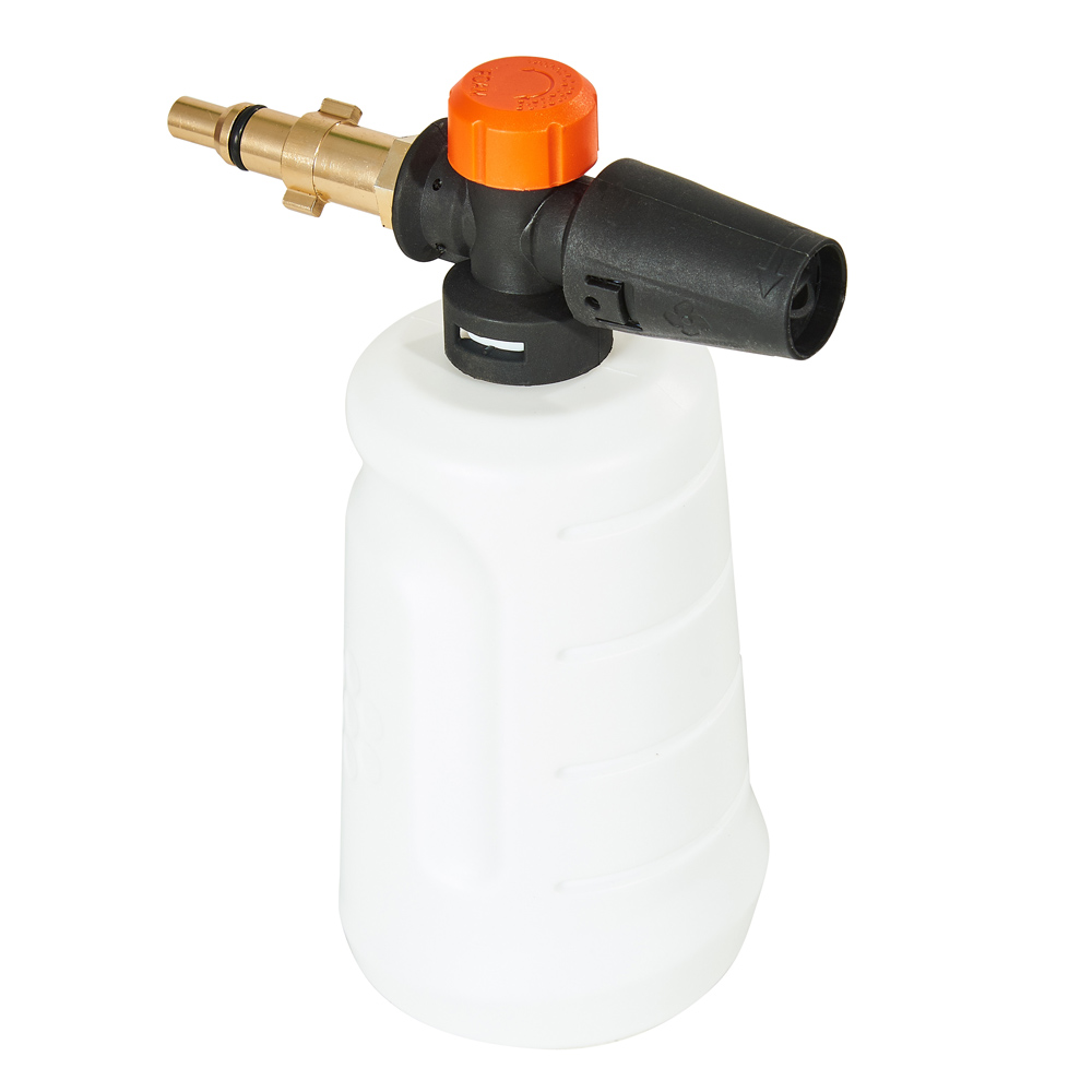 Мийка комплектується пінною насадкою для створення піни із суміші води й шампуню, нанесення піни під час миття.