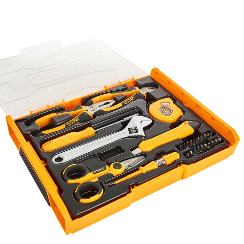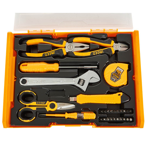 Набір INGCO 29 предметів — це компактний та зручний комплект ручного інструменту, який стане незамінним помічником для домашніх робіт та дрібного ремонту. Усі інструменти виготовлені з високоякісної сталі, що забезпечує міцність та довговічність у роботі.