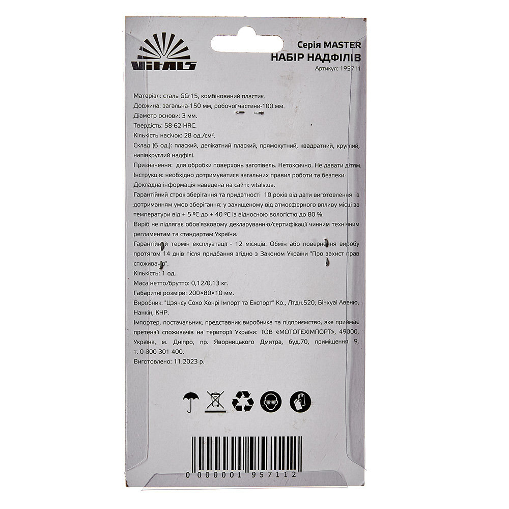 Набір надфілів 3х150 мм, 6 од. Vitals Master