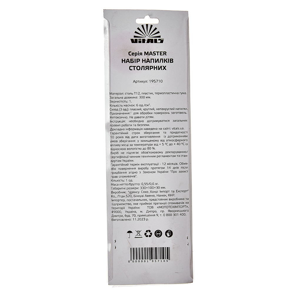 Набір напилків столярних 200 мм, 3 од. Vitals Master