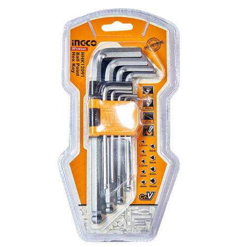 Набір шестигранних ключів із кулею 9 шт. 1,5–10 мм INGCO — це професійний комплект, розроблений для монтажу і демонтажу кріплень з внутрішнім шестигранним шліцом навіть у важкодоступних місцях. Особливістю цього набору є наявність кульової головки на кінці кожного ключа, що забезпечує кутовий доступ і дозволяє працювати під кутом до 25°, значно спрощуючи роботу в складних умовах.