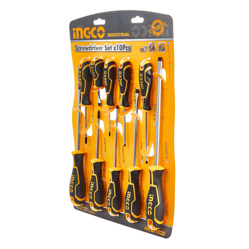 Набір викруток 10 шт INGCO INDUSTRIAL містить в комплекті шість викруток з прямим шліцом і чотири викрутки з хрестовим. Інструменти дозволяють закручувати й відкручувати різні кріпильні елементи.