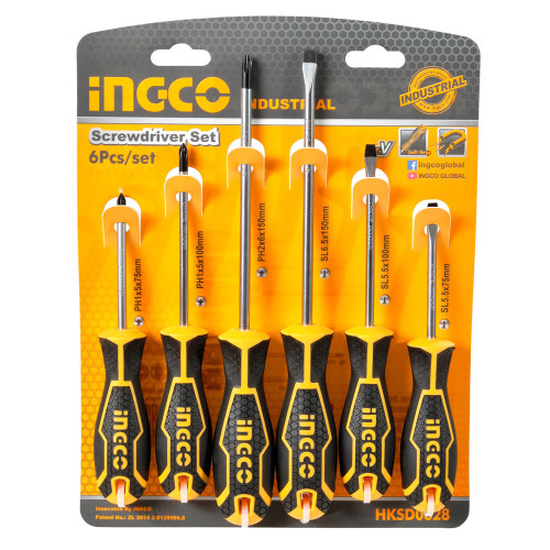 Набір викруток 6 шт INGCO INDUSTRIAL містить в комплекті три викрутки з прямим шліцом і три викрутки з хрестовим. Інструменти дозволяють закручувати й відкручувати різні кріпильні елементи.