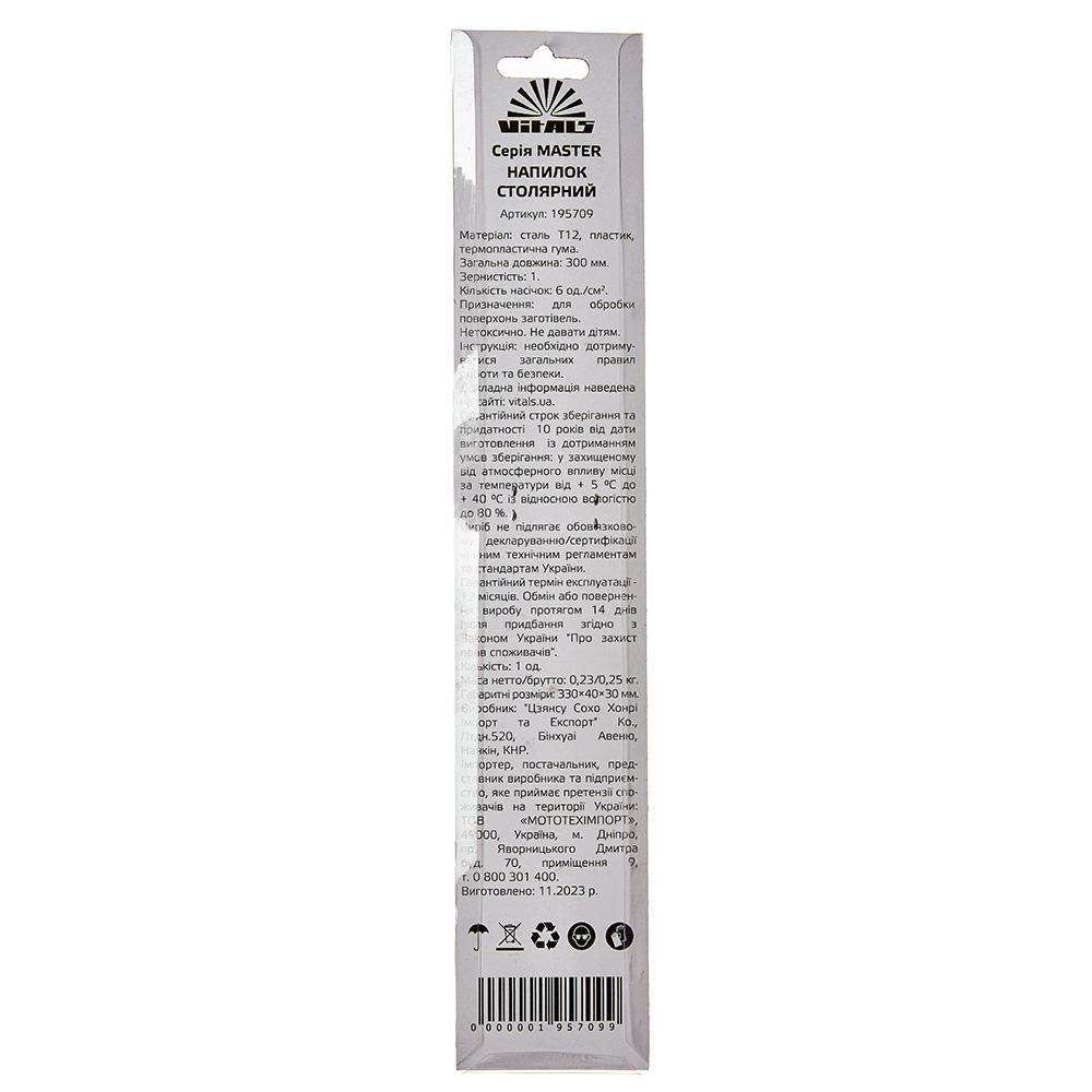 Напилок столярний напівкруглий 200 мм Vitals Master