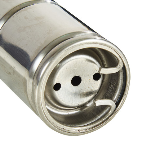 - Мотор розташовується в нижній частині насоса, а у верхньому фланці - різьбовий вихідний патрубок для підключення трубопроводу та зворотного клапана.
