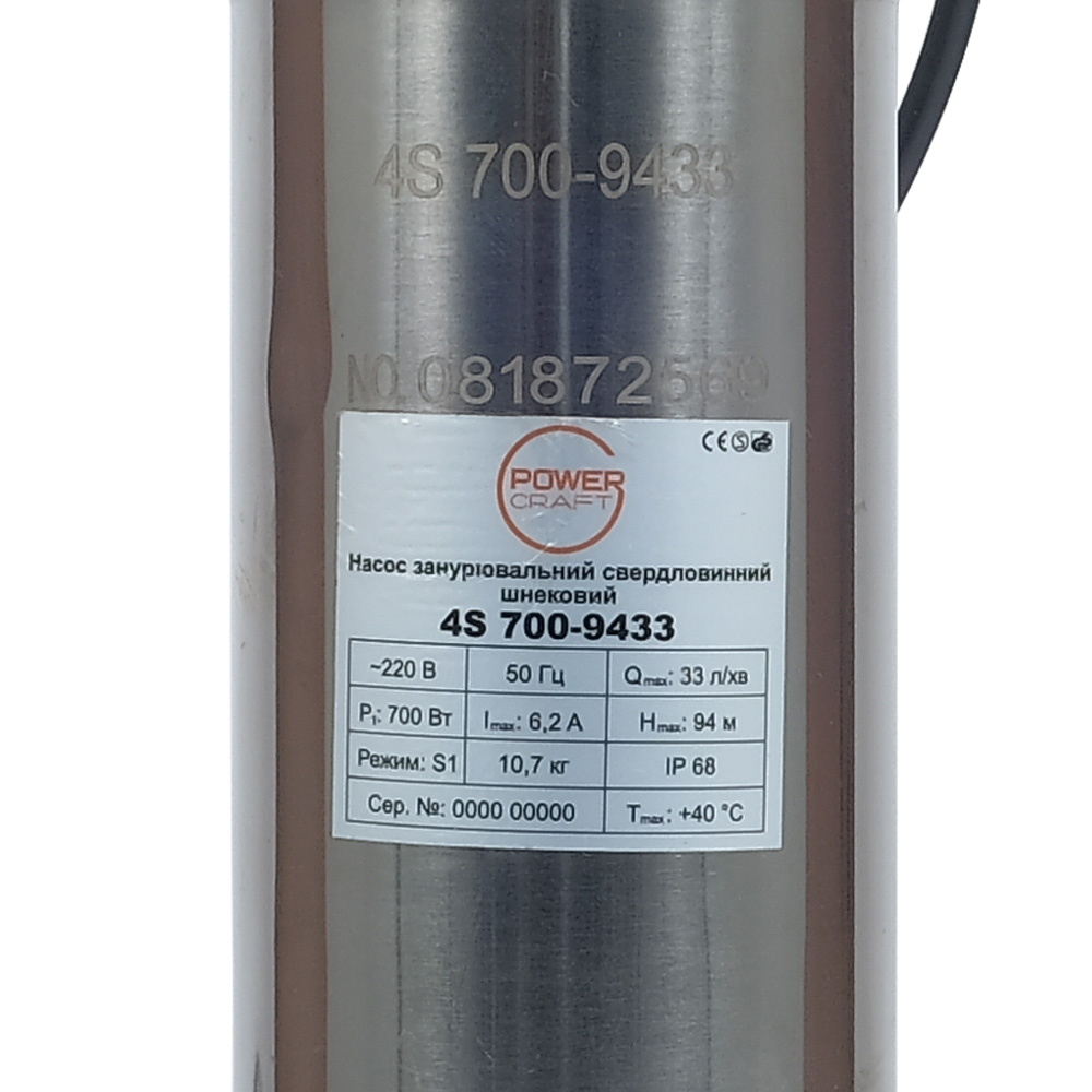 Насос занурювальний шнековий свердловинний Powercraft 4S 700-9433