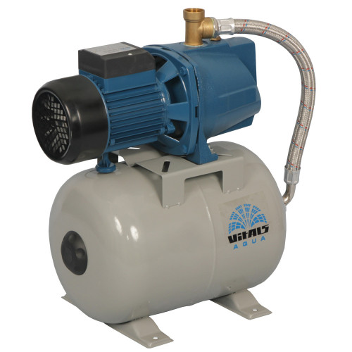 Станція Vitals Aqua AJW 1060-24e оснащена консольним роторним відцентровим самостійно всмоктувальним насосом серії JW із подовженим внутрішнім ежектором. Насоси цього типу забезпечують підвищену стабільність параметрів потоку води у разі зміни умов роботи, найчастіше їх використовують у тих випадках, коли необхідно отримати великий об'єм води, яка перекачується, забезпечивши при цьому високу стабільність характеристик водного потоку і уникнувши необхідності заливки води під час кожного запуску. Щоб уникнути частих вмикань і вимикань насоса, а також щоб тиск в системі змінювався не стрибкоподібно, а плавно, в конструкції станції передбачений гідроакумулятор (сталевий розширювальний бак з еластичною мембраною) ємністю 24 літра.