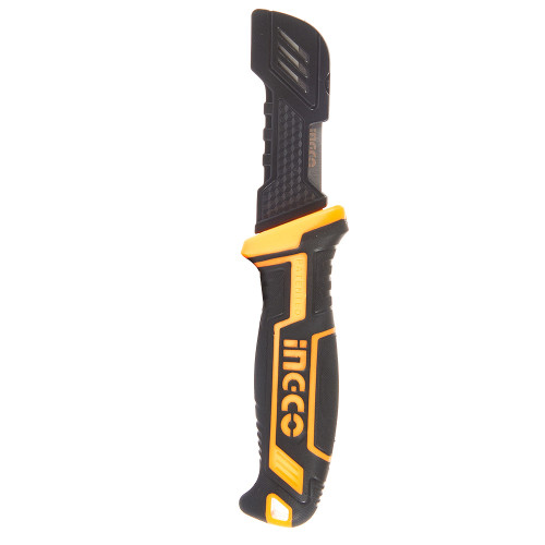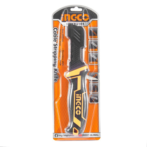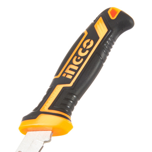 Ніж монтажника INGCO HPK82101, 200 мм — це практичний, надійний і зручний ручний інструмент, спеціально розроблений для виконання широкого спектра монтажних, електромонтажних та оздоблювальних робіт. Він ідеально підходить для зачищення та обрізання електропроводів, кабелів, ізоляції, пластикових елементів, пакувальних матеріалів, шлангів та інших подібних матеріалів.