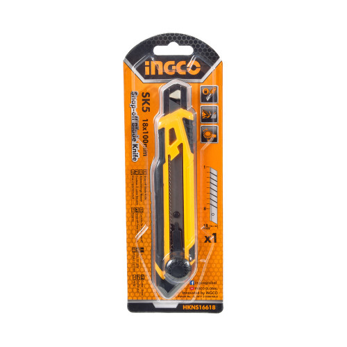 Ніж INGCO 18 мм із фіксатором стане чудовим вибором для будівельних і ремонтних робіт, забезпечуючи комфорт, безпеку та довговічність у використанні.